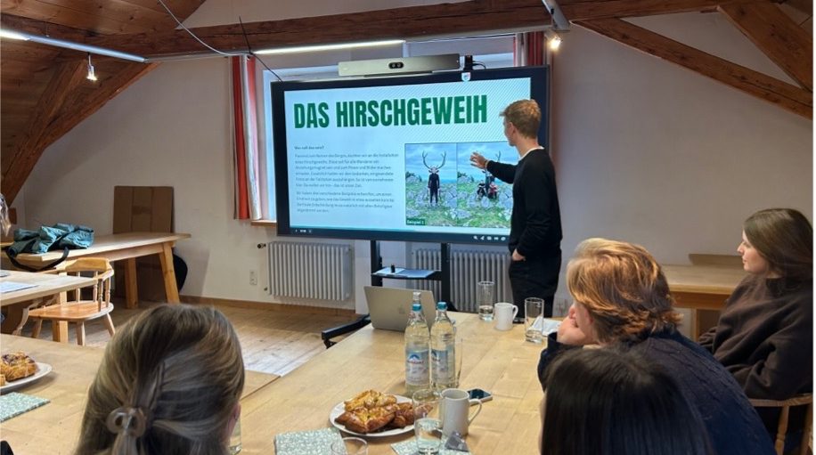 Am 22. und 23. Januar waren sieben Studierende im Rahmen des Projekts „Wir im Wald“ am Hirschberg im Landkreis Miesbach unterwegs. In Gesprächen mit Wandernden und Einheimischen sammelten sie Eindrücke zur Birkhuhn-Thematik und entwickelten ein Schutzkonzept, das den Vorgipfel attraktiver machen soll. Am zweiten Tag stellten sie ihre Ideen vor Vertreterinnen und Vertretern aus Forst, Kommune und Tourismus vor und kamen gemeinsam ins Gespräch.